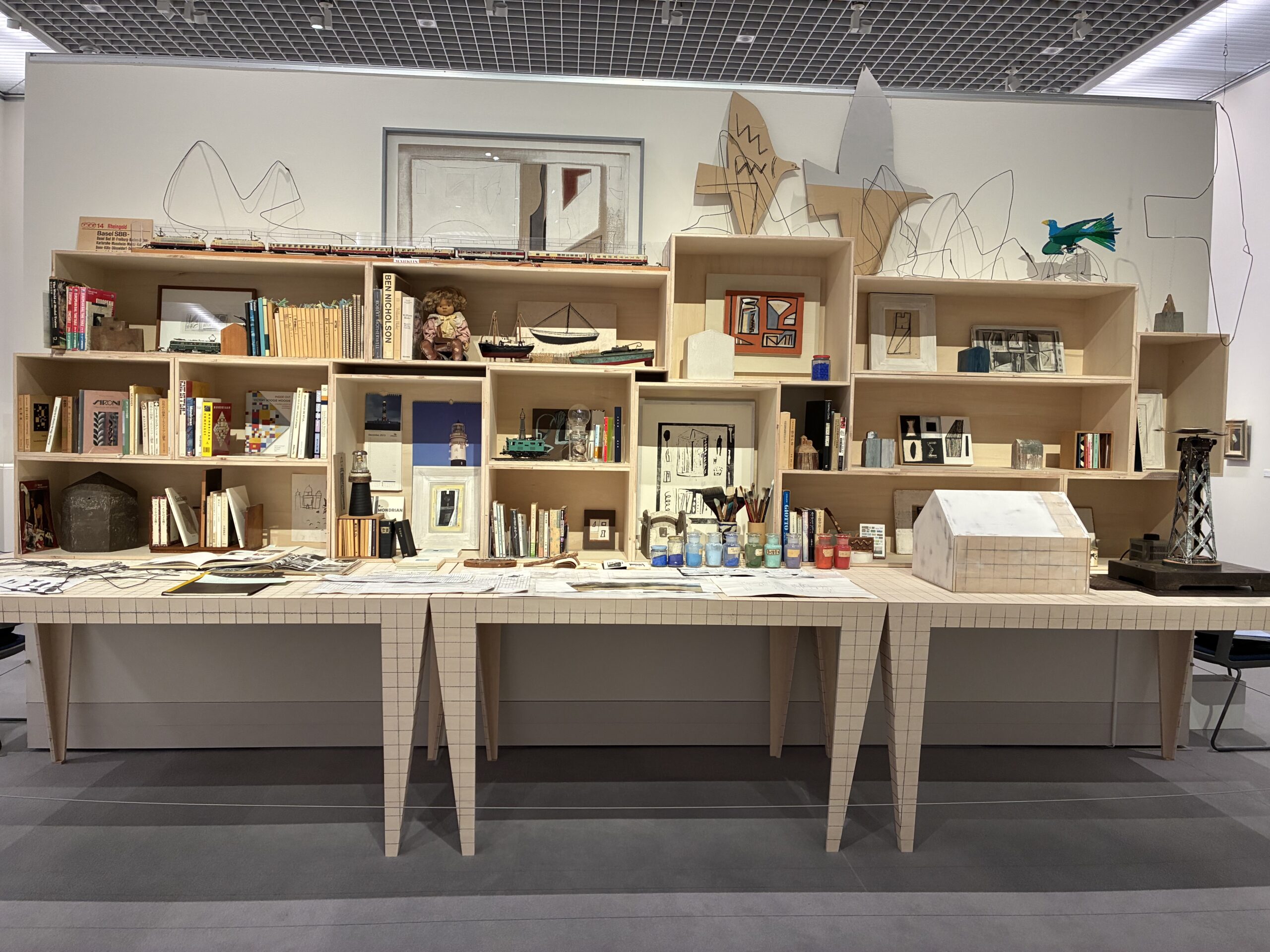宇都宮市出身である画家 北條氏は元来建築に関心があったとのこと、作品にもそれが随所に見受けられる。また画家のアトリエを再現した展示物もそれを物語っている。
