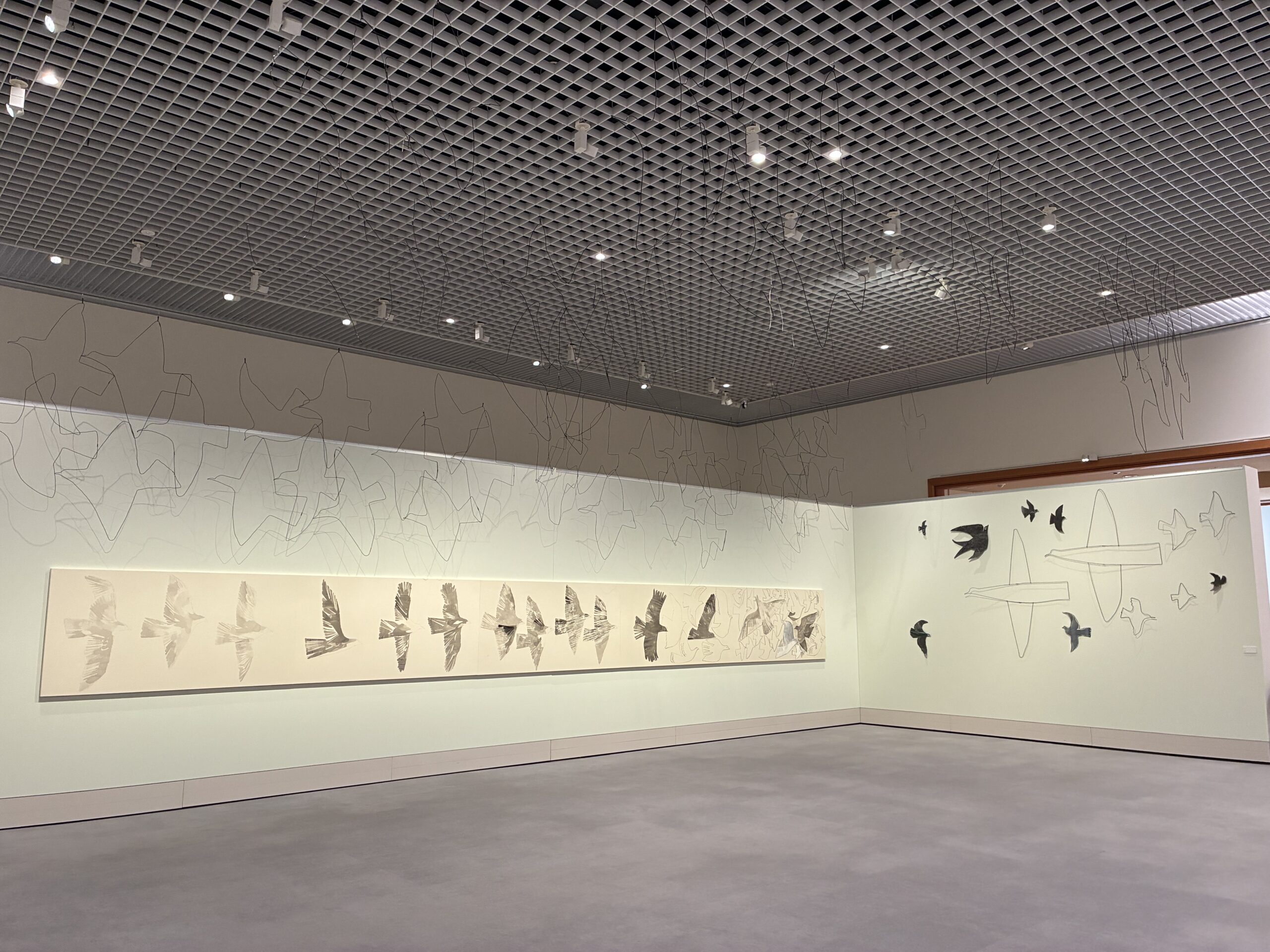 最新作は、宇都宮美術館の森をモチーフとした立体作品。屋内にいながら、個々人の脳内に外の景色が再現される面白い試み。墨を使った、基本的に白と黒の静謐な表現が、心を穏やかにしてくれた。